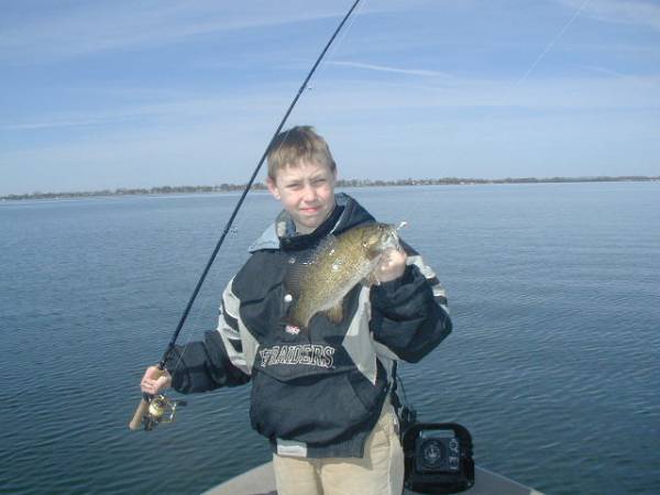 Image description: Austin with a April smallie off of Spirit Lake. Jig and minnow/plastic combo is hard to beat after ice out. | Last modified: March 27 2011 20:49:10 |
