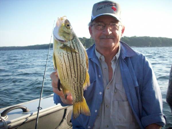 Image description: Chester with a nice yellow bass off of West Okoboji. | Last modified: July 18 2011 21:50:58 |