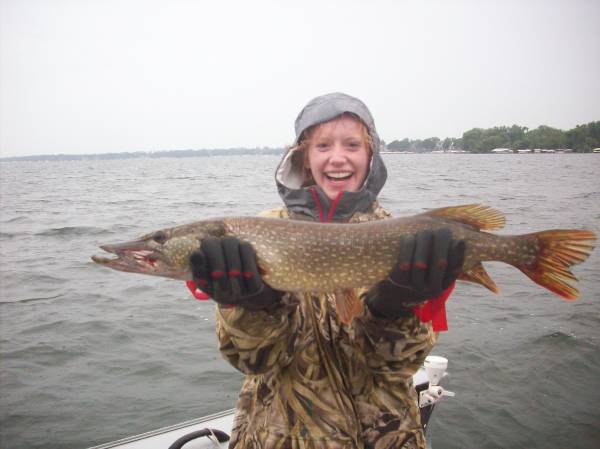 Image description: Way to go Claire. Nasty weather but we boated several pike on the trip. | Last modified: August 16 2014 09:21:24 |