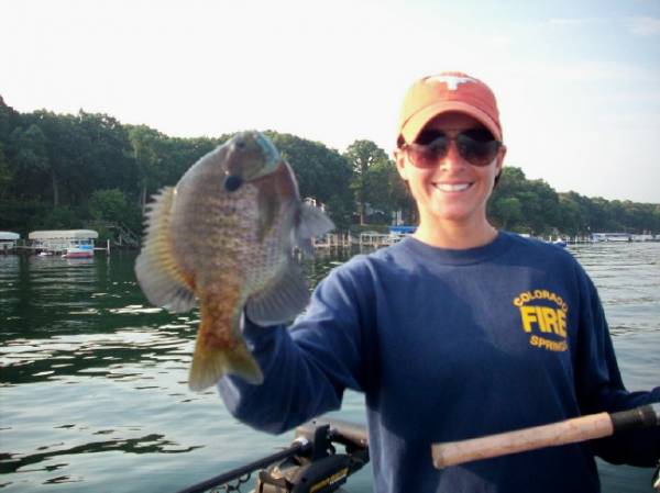 Image description: Karen with a nice gill from West Okoboji. | Last modified: July 06 2012 16:09:36 |
